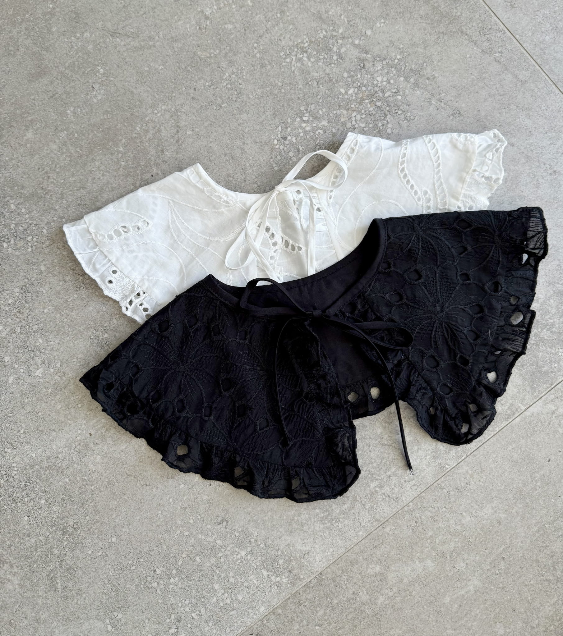 Ażurowy kołnierz z bawełny organicznej — subtelny dodatek, który odmieni każdą stylizację w minutę. Dostępny w kolorach: czarnym i białym.