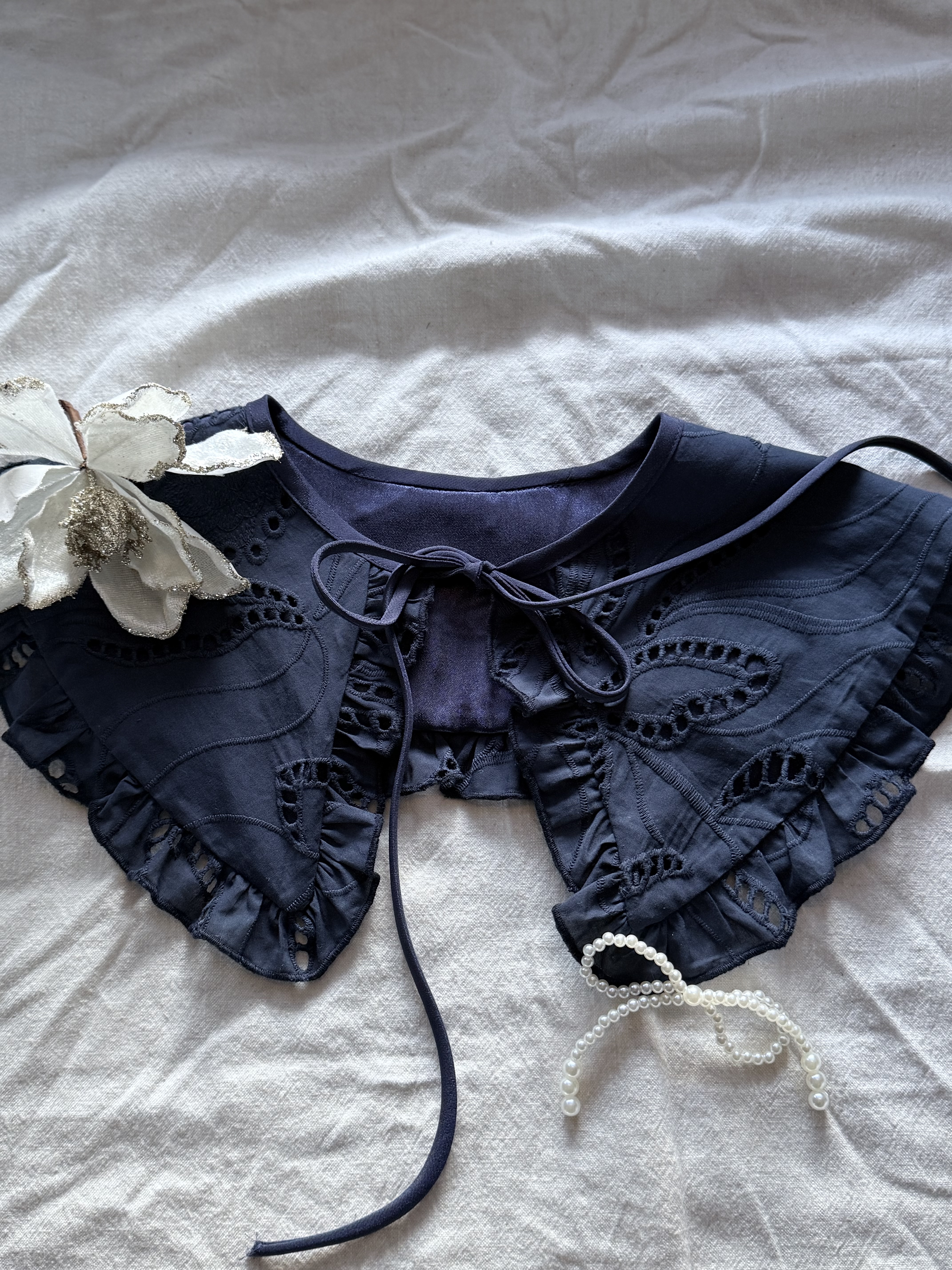 Ażurowy kołnierz z bawełny organicznej — subtelny dodatek, który odmieni każdą stylizację w minutę.